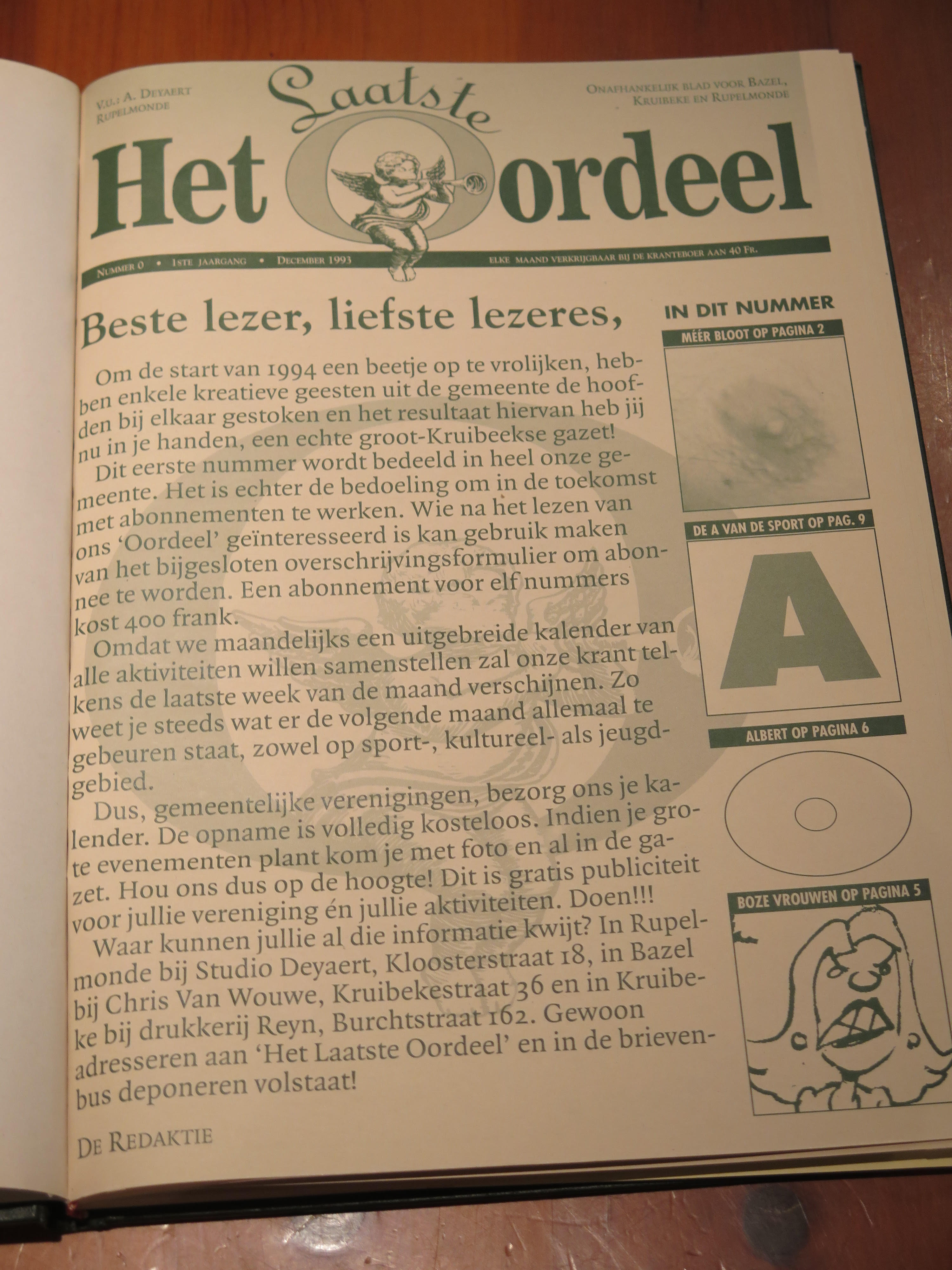 Onder impuls van wijlen Gregie De Maeyer (1951-1998) rolde eind 1993 het eerste ‘Het Laatste Oordeel‘ van de pers. Een twintigtal enthousiaste redacteuren schreef maandelijks het op roze papier gedrukte maandblad vol. Een al even gemotiveerde groep ‘wijkmeesters’ busten de gazet bij de meer dan zevenhonderd abonnees.
